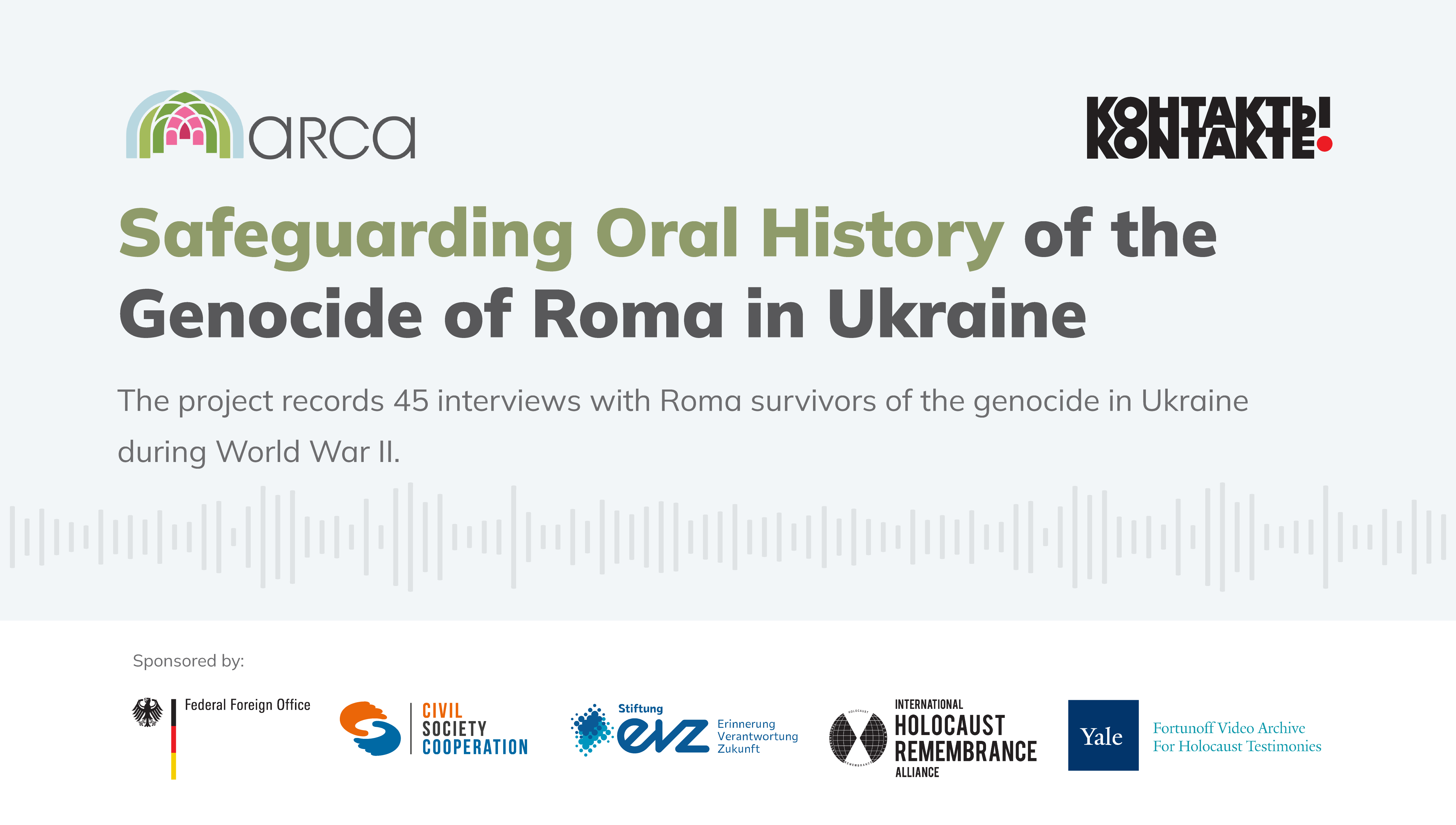 The project implementation is done in partnership with KONTAKTE-KOНTAKTbI. The project is supported by the German Federal Foreign Office, the Foundation “Remembrance, Responsibility and Future” (EVZ), the International Holocaust Remembrance Alliance (IHRA), the Fortunoff Video Archive for Holocaust Testimonies, and the Documenting Ukraine program.